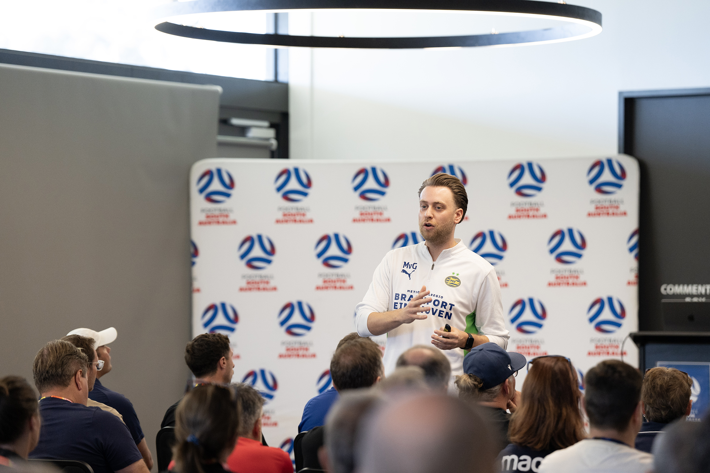 The day began with keynote speakers Mitch Van Gellekom, Manager of the PSV Coaching Academy, who is known for driving innovation and excellence in football education. And Dr Rob Mason, Port Adelaide Football Club (AFL) Coach Development Manager, who consults to high performance sporting organisations around the world on the topics of learning, communication, and feedback.