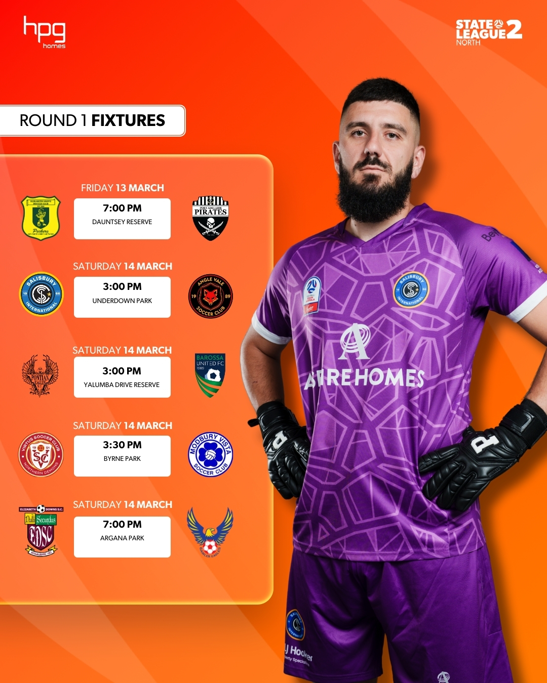 The State League excitement continues on Friday, 13 March, as the HPG Homes State League 2 North welcomes three new clubs. Angle Vale travels to face Salisbury Inter, Elizabeth Downs hosts Gawler Eagles, and Barossa United makes the trip to take on Pontian Eagles. Expect plenty of passion and drama in SL2N this season.