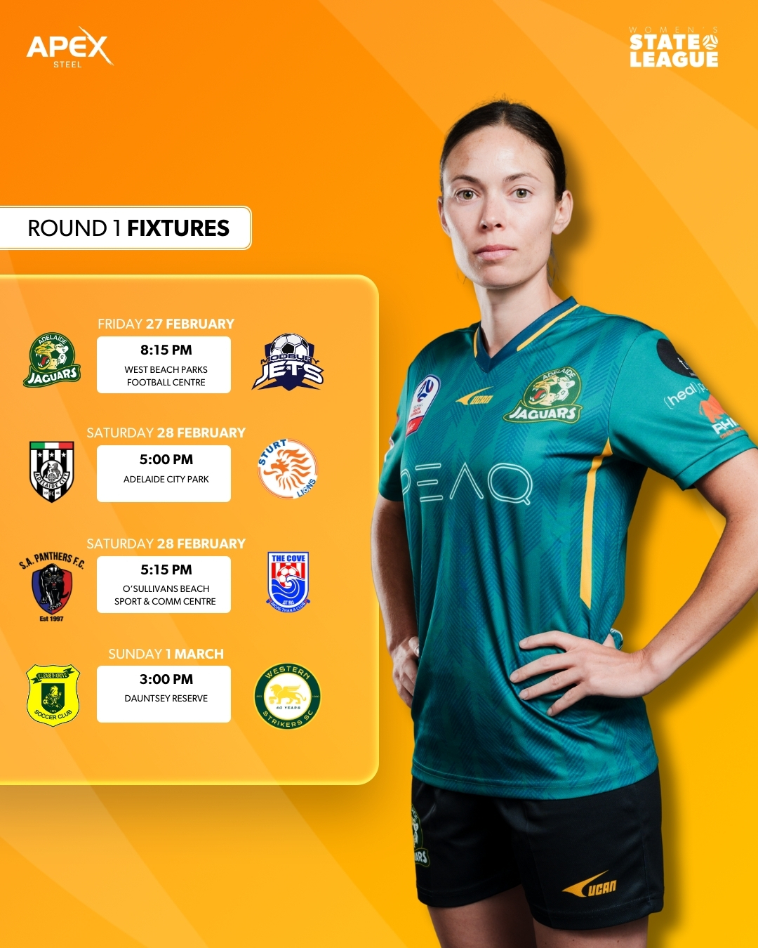 The Apex Steel Women’s State League returns on Friday, 27 February, with Adelaide Jaguars hosting Modbury Jets at 8:15 pm.