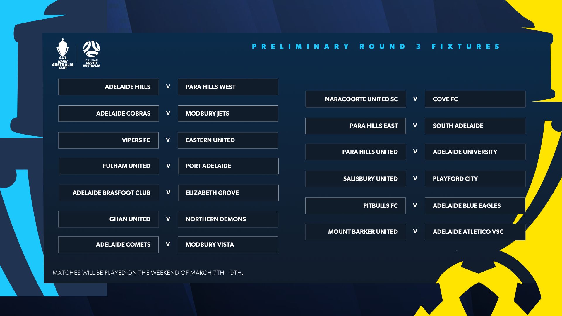 7 RAA NPL teams will receive a bye for Round 3. Additionally, Adelaide United is not eligible for the Preliminary Rounds as they will join directly from the Final Rounds as an A-League Club.