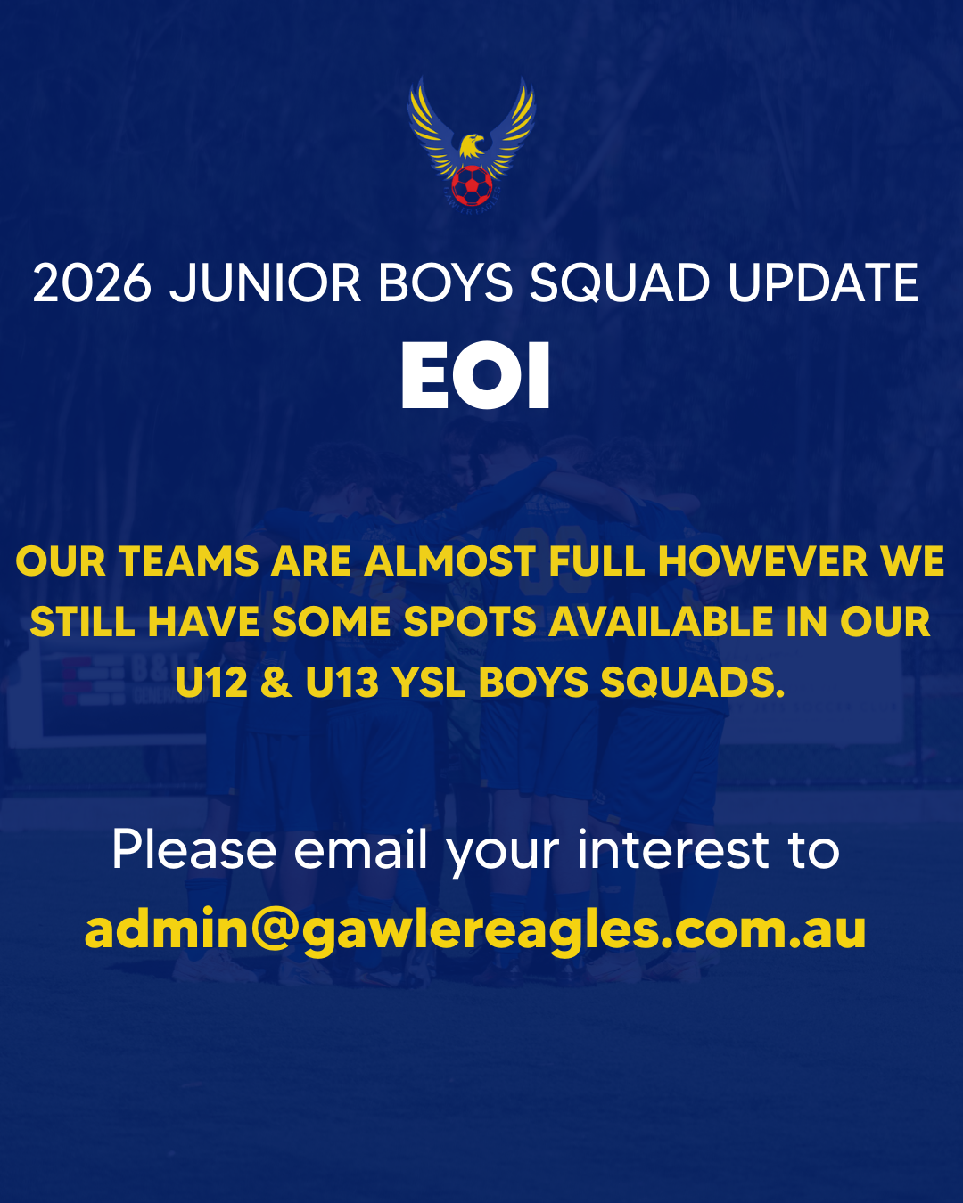 - Junior Boys (EOI): Limited spots in U12 & U13 YSL squads.