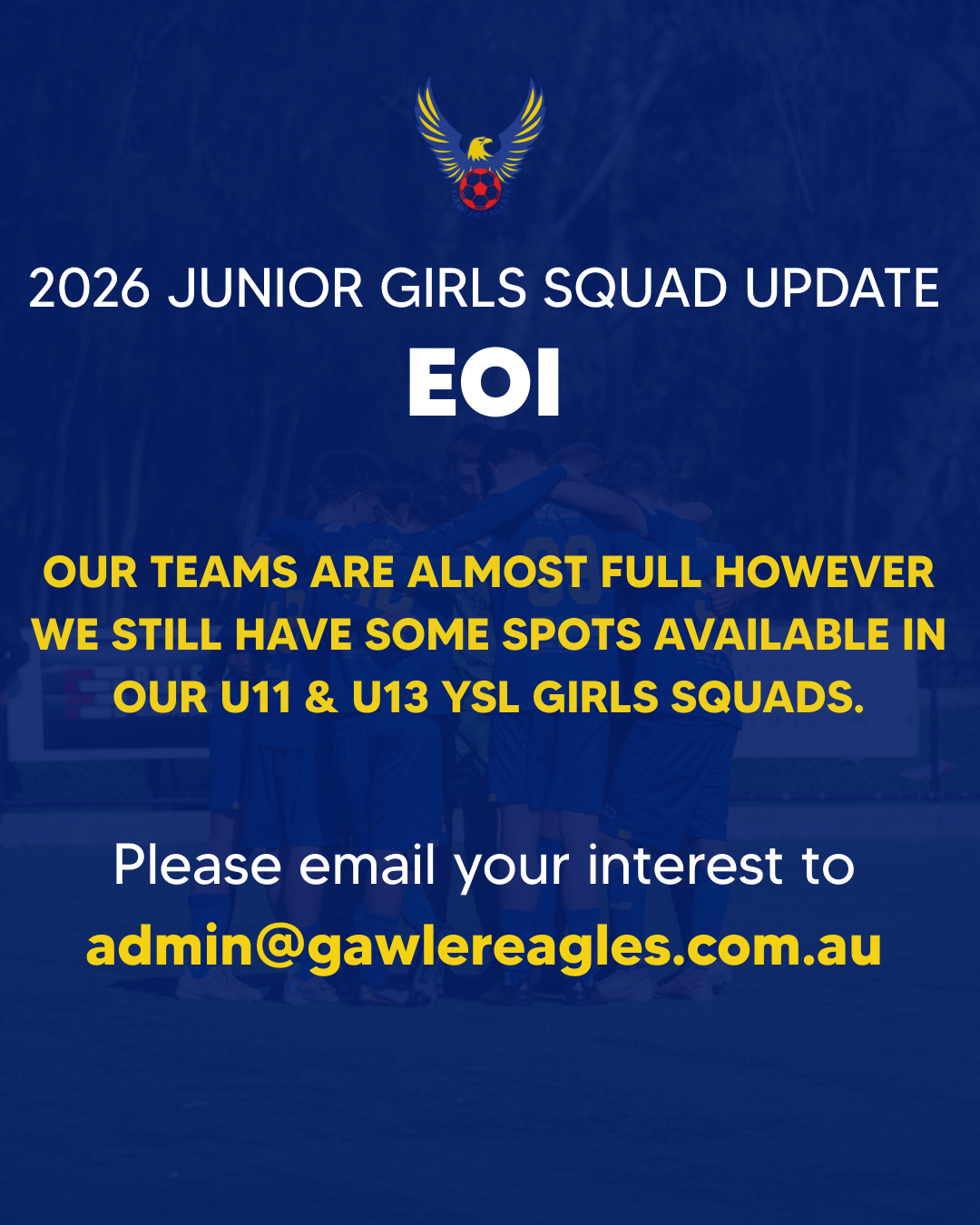 - Junior Girls (EOI): Limited spots in U11 & U13 YSL squads.