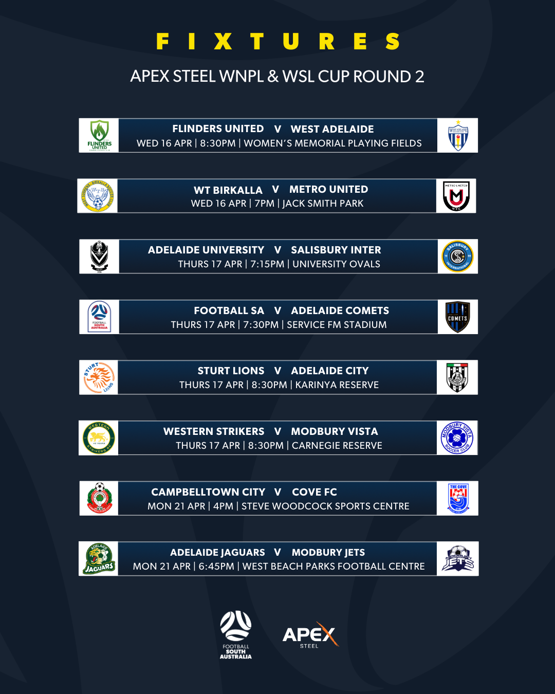 The Apex Steel WNPL & WSL Round 2 fixtures are now confirmed.