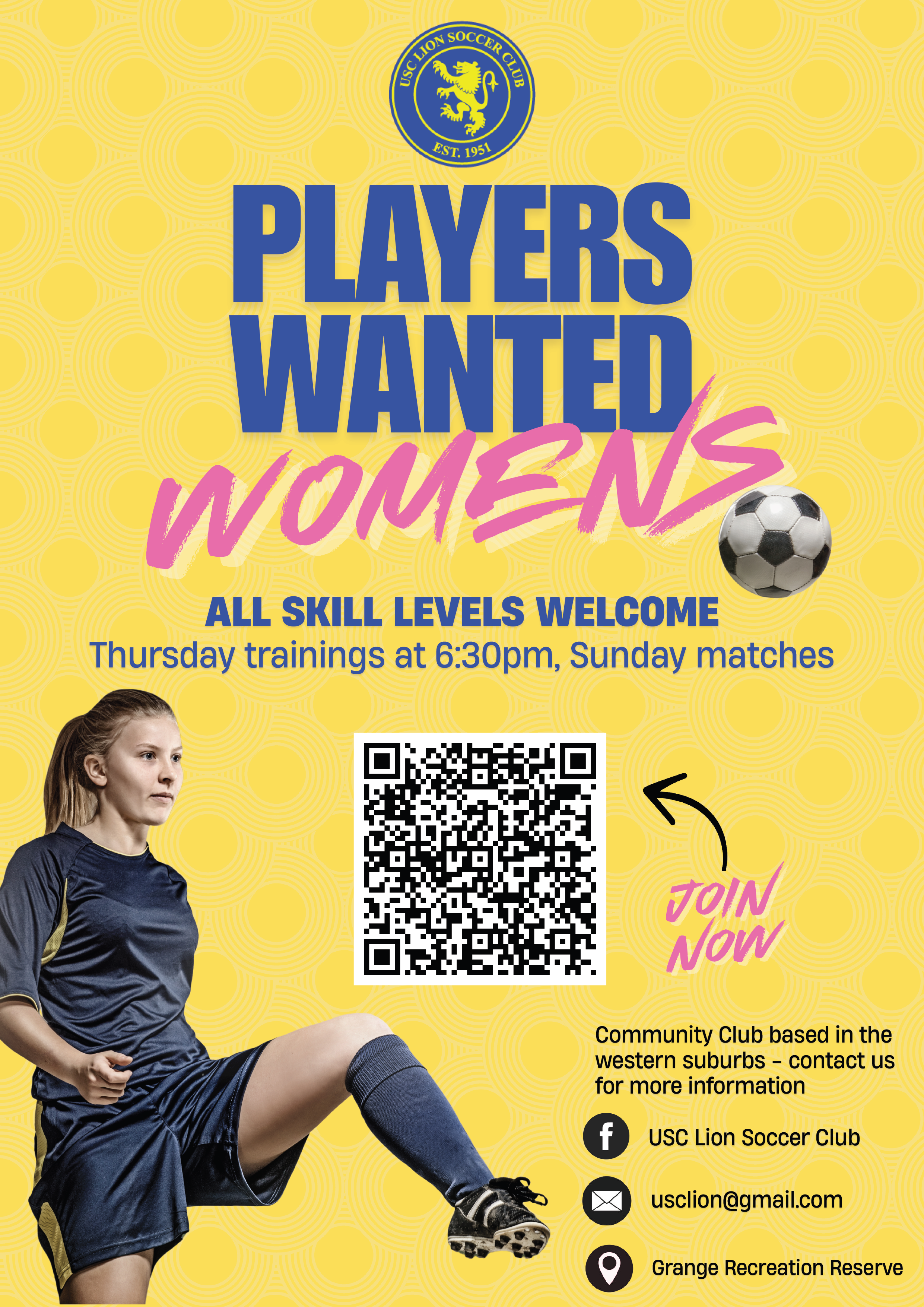 1770071907,1770072254 + Ready to play? USC Lion Soccer Club is looking for women of all skill levels. Train Thursdays, play Sundays. Join now!