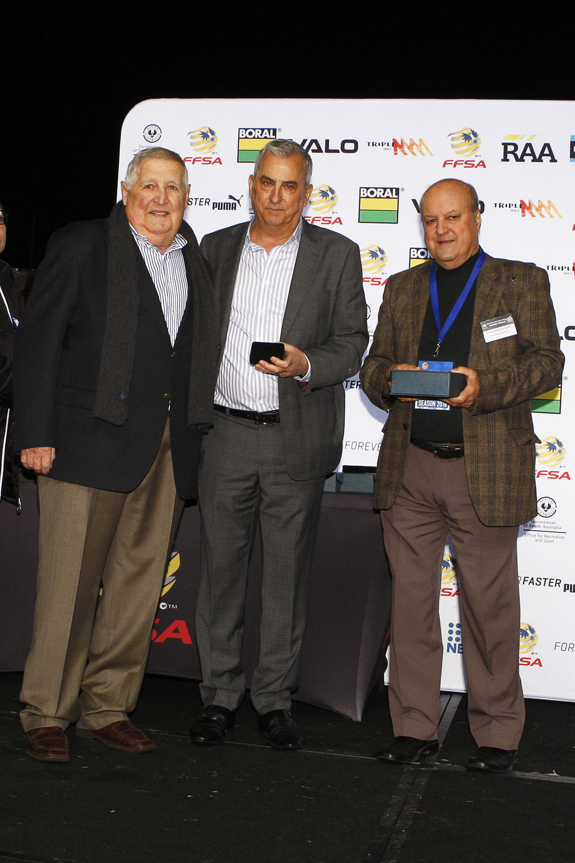 Image: Oleh being inducted as a Football SA Life Member in 2018, pitcured with then President, Sam Ciccerello, and then Director, Orazio Di Carlo. Photo taken by Joe Janko
