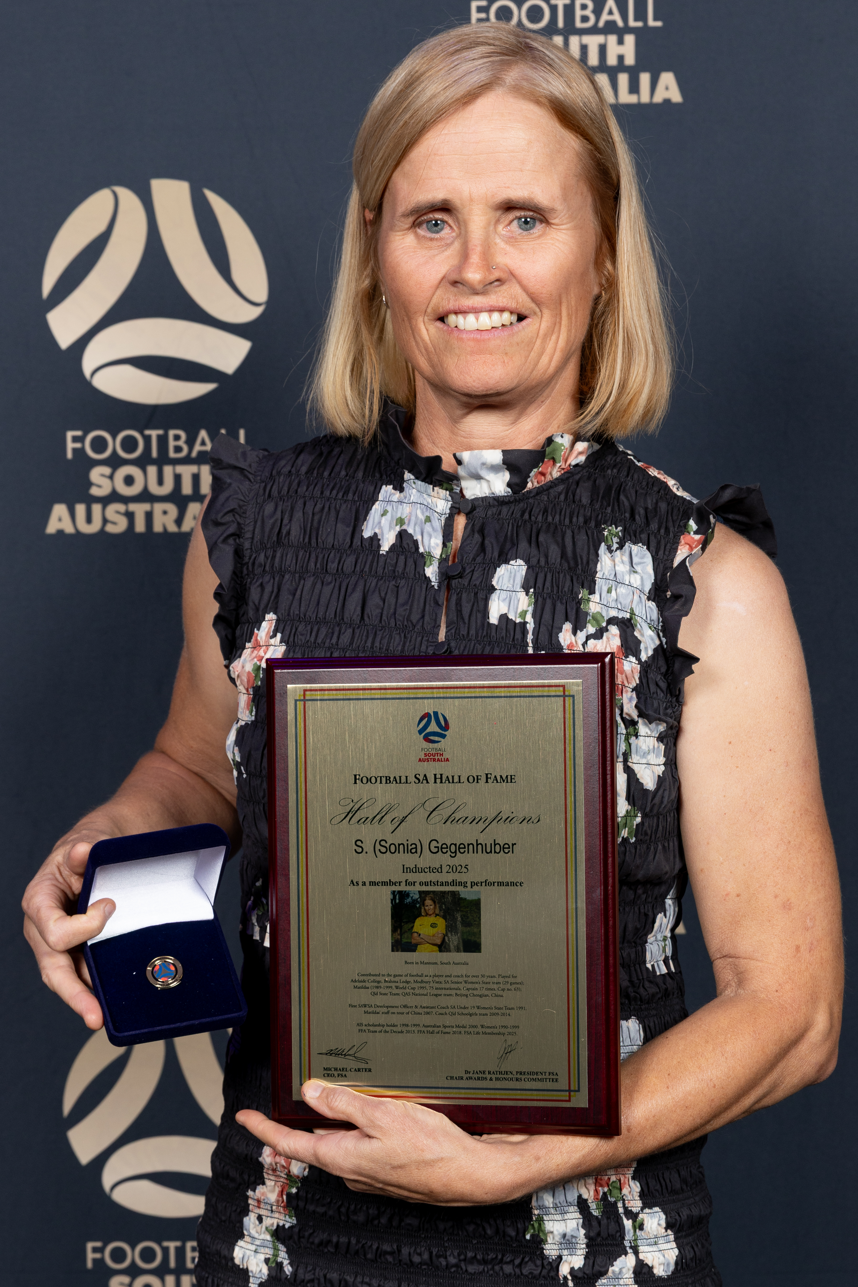 Beyond playing, Sonia worked as South Australia’s first development officer for women’s football, coaching junior state teams and later managing schoolgirls’ representative teams. Inducted into the FFA Hall of Fame, awarded the Australian Sports Medal, and named in the 1990s Team of the Decade, Sonia was also recognised as a Football SA Life Member in 2025. Her career reflects her pioneering role in advancing opportunities for women and inspiring the next generation of footballers.