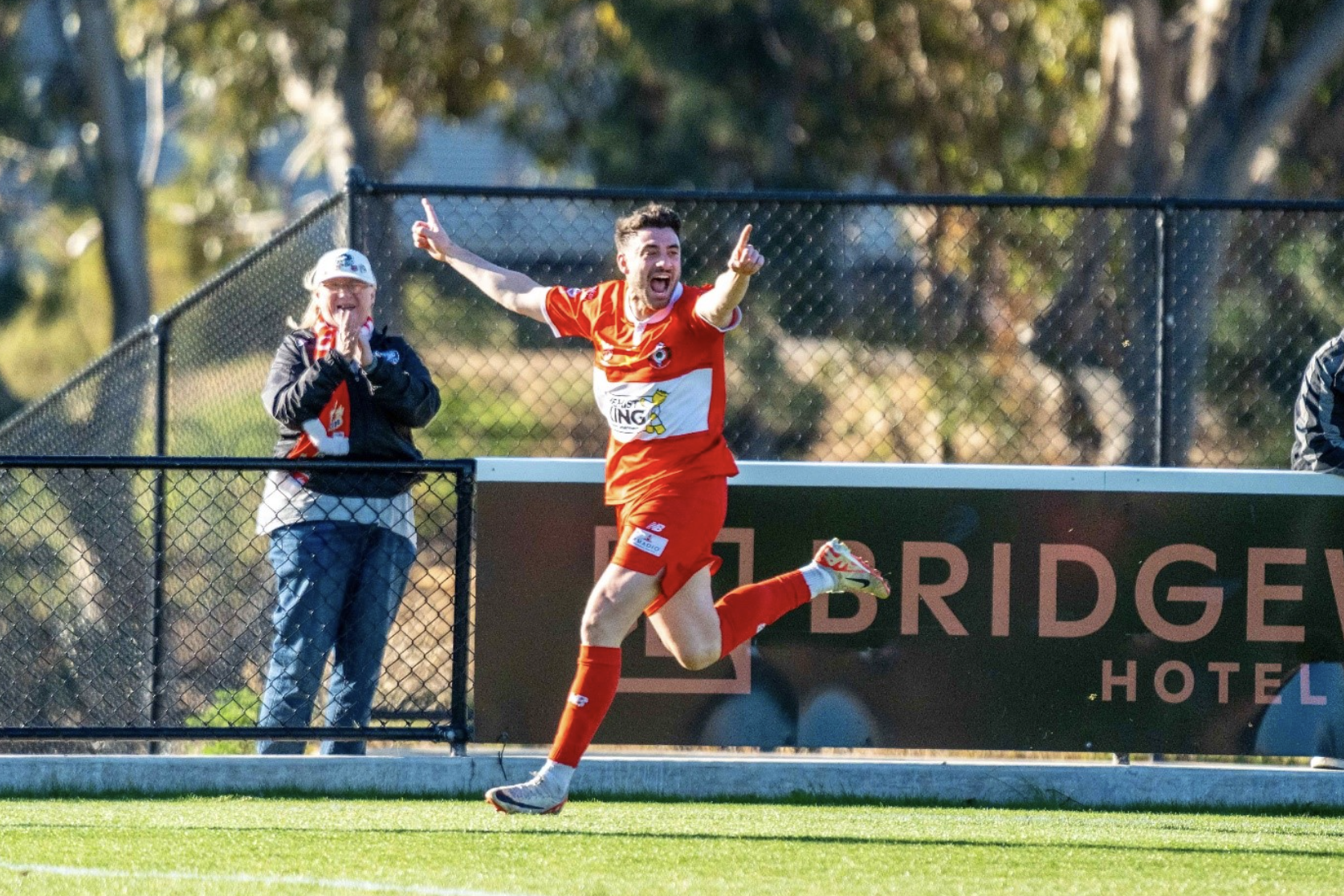 Image: Marc Marino celebrates opening the scoring for Campbelltown City against Modbury Jets (Image: Ben Blaess/BDb.media)